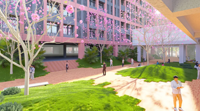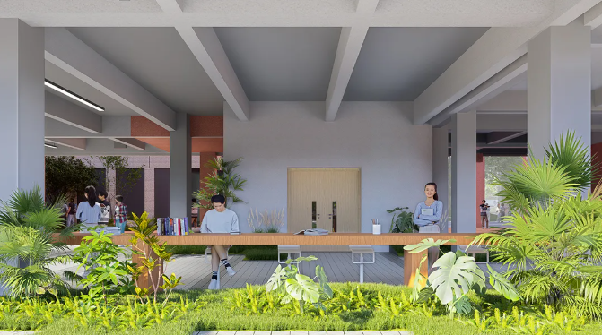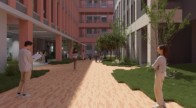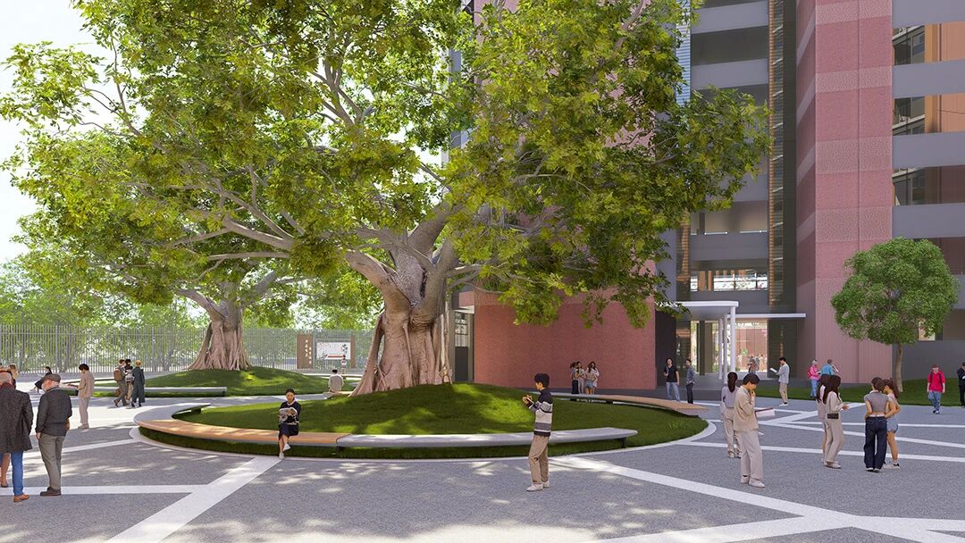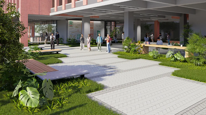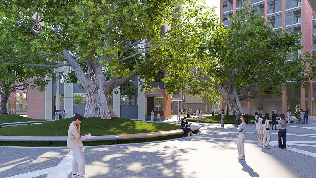 设计借鉴岭南园林“建筑环庭”布局,通过“一街六园”的结构,将新旧建筑有机融合,营造出既有历史感又具现代气息的校园氛围。