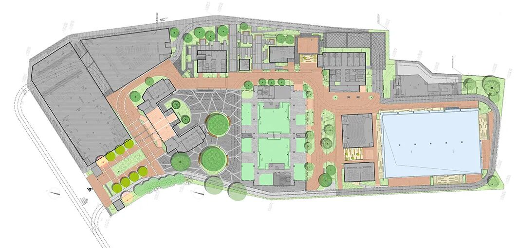 拆除4号楼和200座单层报告厅等陈旧建筑,释放校园核心部分的场地空间。